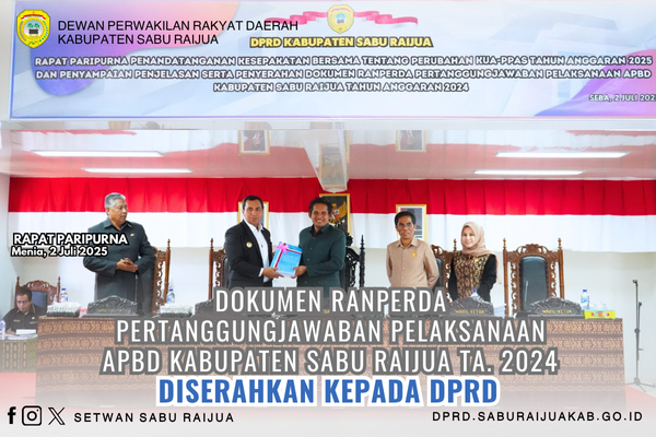 Dokumen Ranperda Pertanggungjawaban Pelaksanaan APBD Kabupaten Sabu Raijua TA. 2024 Diserahkan Kepada DPRD