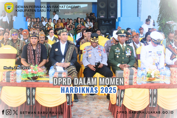Ambil bagian dalam perayaan Hari Pendidikan Nasional 2025 dengan berbalutkan pakaian tradisional Sabu Raijua, jajaran Pimpinan dan Anggota DPRD Kabupaten Sabu Raijua hadir dalam upacara bendera, selebrasi Hari Pendidikan Nasional 2025, penanaman pohon serta kunjungan ke pameran stand sekolah. Perayaan dengan tema Partisipasi Semesta Wujudkan Pendidikan Bermutu Untuk Semua tersebut turut diwarnai dengan tarian massal Pedo’a di halaman Kantor Bupati Sabu Raijua.