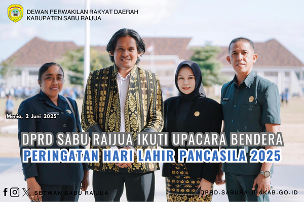 Ketua DPRD, Rae Edin Saputra Manoe Lado, Wakil Ketua II DPRD, Anindha Maharani Alboneh dan Anggota DPRD Sabu Raijua, Debora Babo Higa dan Swingly Dala Ngapa menghadiri dan mengikuti Upacara Bendera dalam rangka memperingati Hari Lahir Pancasila Tahun 2025 Tingkat Kabupaten Sabu Raijua di halaman depan Kantor Bupati Sabu Raijua.