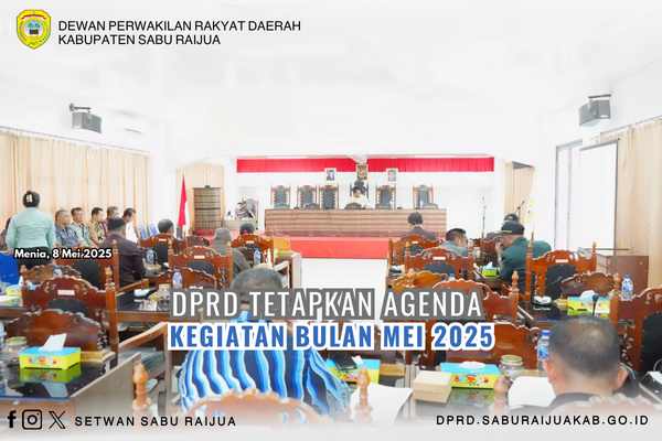 Agenda Kegiatan DPRD Kabupaten Sabu Raijua Bulan Mei 2025 dibahas dan ditetapkan dalam Rapat Paripurna ke 7 Masa Persidangan II siang tadi. Rapat tersebut dipimpin oleh Ketua DPRD, Rae Edin Saputra Manoe Lado dengan dihadiri oleh para Anggota DPRD, Kepala Bappeda beserta jajarannya serta Sekretaris DPRD. Kehadiran Bappeda turut menyimak penjadwalan penyerahan dan pembahasan dokumen Rancangan Awal RPJMD Kabupaten Sabu Raijua TA. 2025-2029.