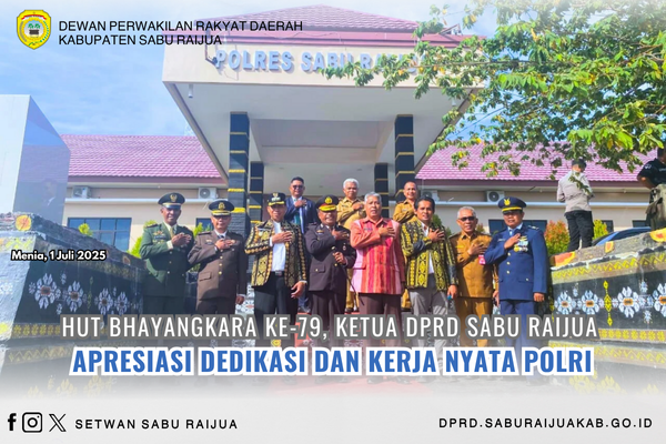 Polres Sabu Raijua menggelar serangkaian acara penting dalam rangka memperingati Hari Bhayangkara ke-79 Tahun 2025 pada Selasa, 1 Juli 2025. Acara yang bertempat di Kantor Polres Sabu Raijua tersebut diawali dengan Upacara Bendera, dilanjutkan dengan Acara Syukuran, serta turut dirangkai dengan Pelepasan Tugas Wakil Kepala Polres Sabu Raijua. Acara tersebut dihadiri oleh sejumlah tokoh penting daerah, termasuk Ketua DPRD Sabu Raijua, Rae Edin Saputra Manoe Lado, Ketua Komisi 2 DPRD, Karel O. Modjo Djami, S.Sos, dan Ketua Komisi 3 DPRD, Laurens A. Ratu Wewo, S.Sos.