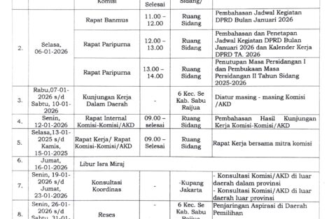 Agenda • Agenda DPRD Jadwal Kegiatan DPRD Kabupaten Sabu Raijua Bulan Oktober – November 2025 3 bulan ago