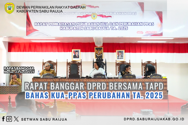 Badan Anggaran (Banggar) DPRD Kabupaten Sabu Raijua menggelar rapat kerja bersama Tim Anggaran Pemerintah Daerah TAPD untuk membahas Rancangan Perubahan Kebijakan Umum Anggaran (KUA) serta Perubahan Prioritas dan Plafon Anggaran Sementara (PPAS) untuk Tahun Anggaran 2025. Rapat yang dipimpin oleh Ketua Banggar DPRD, Rae Edin Saputra Manoe Lado tersebut merupakan tahap krusial dalam penyesuaian arah kebijakan fiskal daerah di pertengahan tahun berjalan.