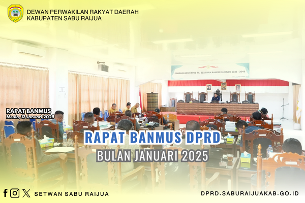 Badan Musyawarah DPRD Kabupaten Sabu Raijua menggelar rapat penyusunan jadwal kegiatan bulan Januari 2025 dan bersama Anggota DPRD lainnya menyusun kalender kerja untuk tahun 2025 dalam tiga fase masa persidangan. Rapat tersebut dipimpin oleh Ketua DPRD, Rae Edin Saputra Manoe Lado.