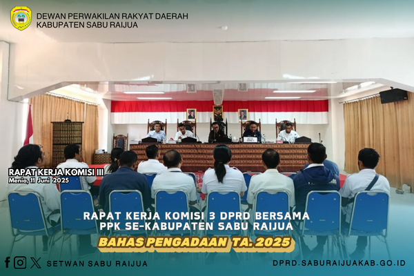Pentingnya percepatan dalam proses pengadaan barang dan jasa di Kabupaten Sabu Raijua menjadi sorotan utama dalam Rapat Kerja Komisi 3 DPRD Kabupaten Sabu Raijua dengan para Pejabat Pembuat Komitmen (PPK) dari berbagai bagian, dinas, dan badan di lingkup Pemerintah Kabupaten Sabu Raijua.