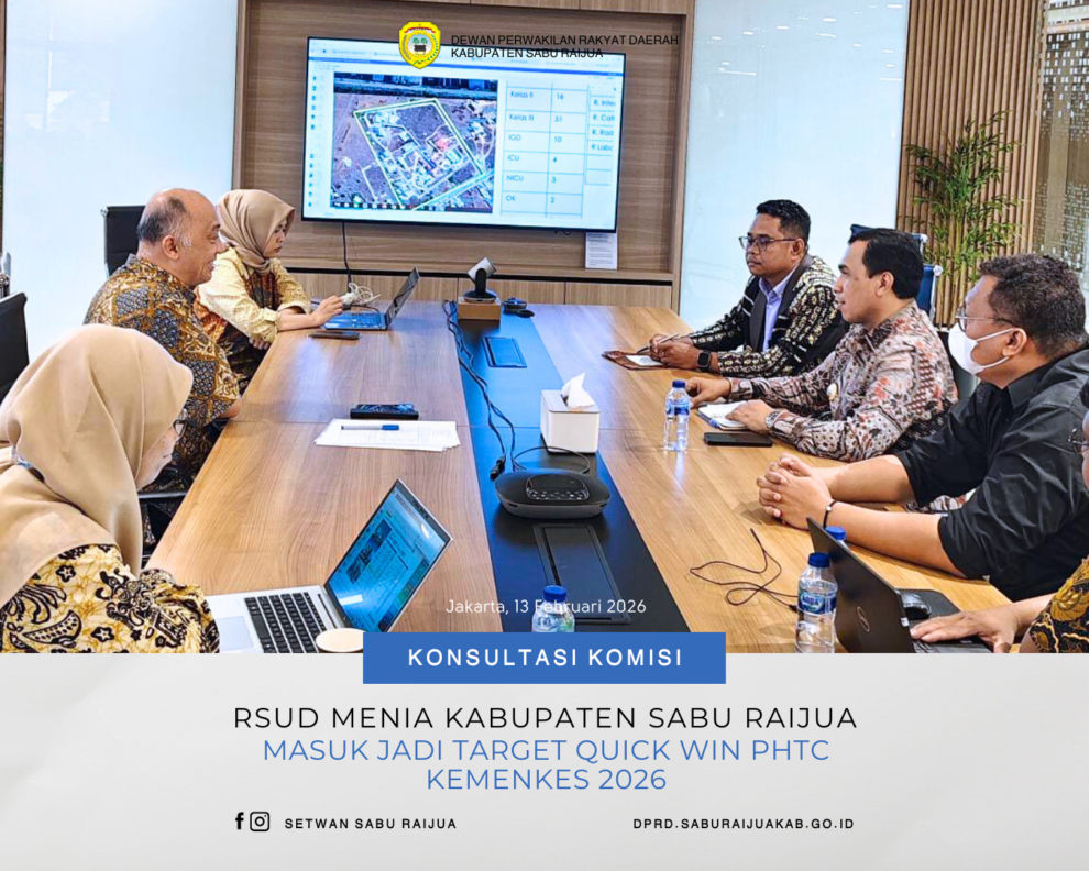 Audiensi antara Direktorat Jenderal Kesehatan Lanjutan Kementerian Kesehatan RI bersama Pemerintah Daerah Kabupaten Sabu Raijua diantaranya, Bupati Sabu Raijua, Krisman Bernard Riwu Kore, SE., MM., Direktur RSUD Menia, dr. Ivan Benny Lino Jeremia, Kepala Sub Bagian Perencanaan, Pengendalian dan Pelaporan Dinas Kesehatan Sabu Raijua, Hermanus Kana Lomi serta Ketua Komisi III DPRD Kabupaten Sabu Raijua, Laurens A. Ratu Wewo, S.Sos berdialog terkait Kebijakan Percepatan Akreditasi RSUD Menia Kabupaten Sabu Raijua dari tipe D ke tipe C. Bahasan tersebut sejalan dengan arah pembangunan Kesehatan 2025-2029 sebagai bagian dari upaya mewujudkan Visi Indonesia Maju 2045.
