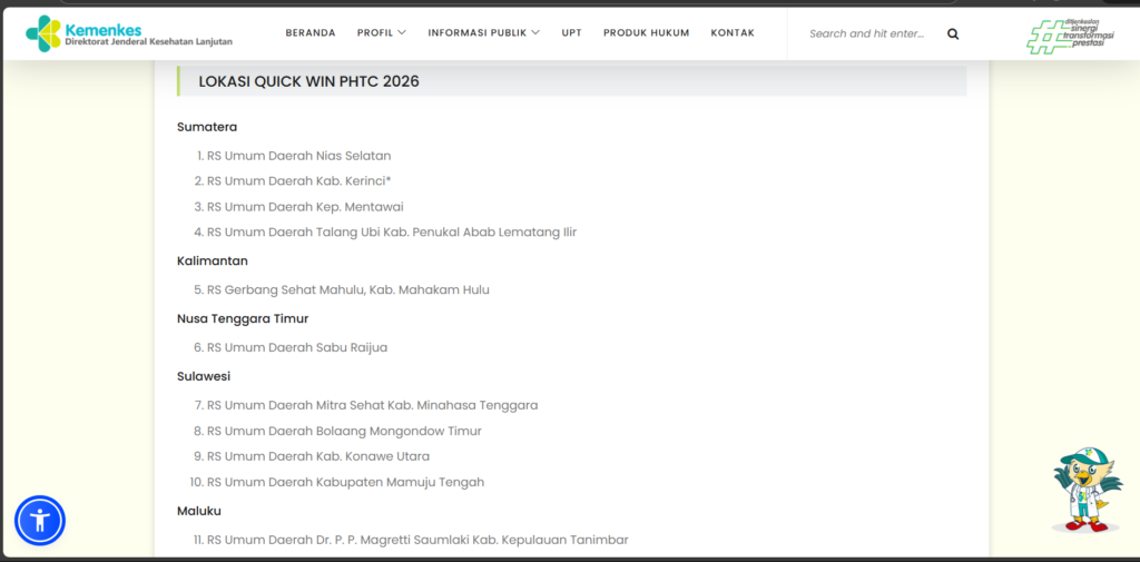 Salah satu program tersebut merupakan wujud nyata inisiatif Presiden Prabowo Subianto melalui Program Hasil Terbaik Cepat (PHTC)/ Quick Win yang dilaksanakan Ditjen Kesehatan Lanjutan yakni Pembangunan RS Lengkap Berkualitas. RSUD Menia sebagai salah satu lokasi target tahun 2026 akan mengalami Peningkatan kualitas RSUD yang dilakukan dengan peningkatan kelas rumah sakit dari D menjadi kelas C melalui penambahan sarana prasarana dan alat kesehatan. Melalui program tersebut diharapkan akses pelayanan kesehatan dapat lebih mudah dijangkau untuk masyarakat Sabu Raijua yang merupakan daerah yang masuk kawasan tertinggal, perbatasan, dan kepulauan (3T).