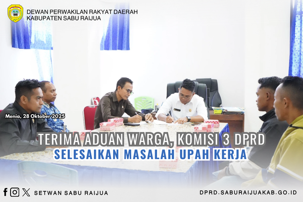 Bentuk komitmen Komisi 3 DPRD dalam memantau dan memfasilitasi komunikasi dalam pengerjaan pembangunan di Kabupaten Sabu Raijua ditunjukkan pula dengan mengakomodir aduan warga terkait hak-hak tenaga kerja mereka di salah satu proyek pembangunan di Kecamatan Hawu Mehara. Pengaduan tersebut diterima dari sejumlah eks-tenaga kerja yang mengklaim upah mereka belum dibayarkan oleh pihak kontraktor proyek Pembangunan Pusat Kesehatan Masyarakat (Puskesmas) Daieko.